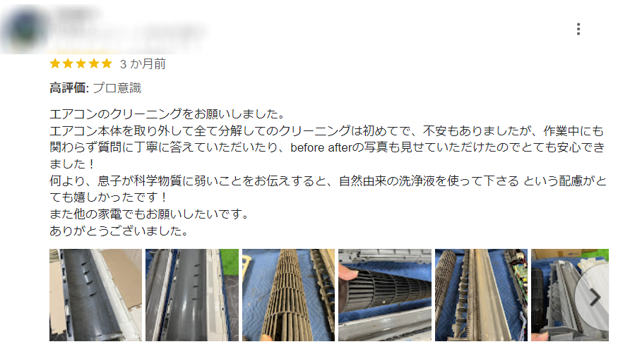 一般的なエアコン洗浄業者では、コスト削減の為に人体に害のある成分が含まれた合成洗剤を使用している業者も多く見受けられますが、エアコン完全キレイ便ではお客様の大切なご家族も安心して利用できるように、